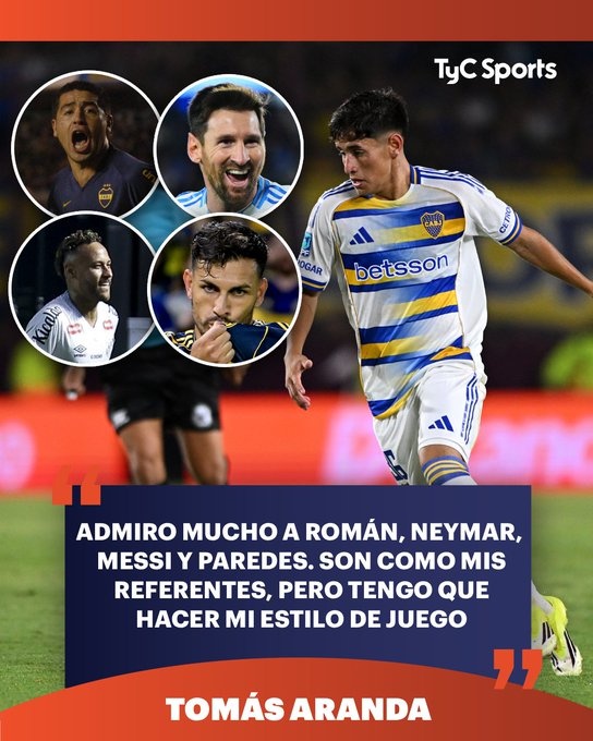 3月5日讯 在博卡青年对阵拉努斯的比赛中首次首发出场并取得胜利后,博卡小将托马斯·阿兰达谈到了他的足球榜样。